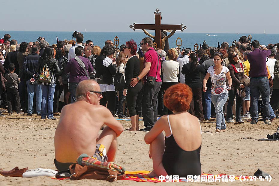 周五(2日),西班牙巴倫西亞,人們?cè)诤┡e行復(fù)活節(jié)游行。