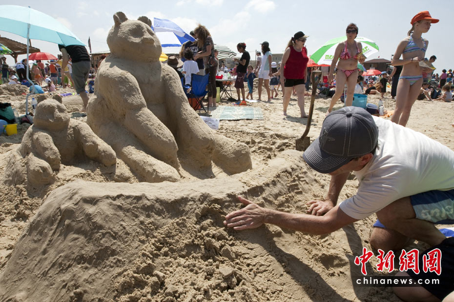 4月5日,以色列國家公園和自然保護區(qū)管理局在北城鎮(zhèn)Beit Yanai舉行了一年一度的沙雕大賽。世界眾多國家的沙雕愛好者前來參賽。圖片來源:中國新聞網(wǎng)