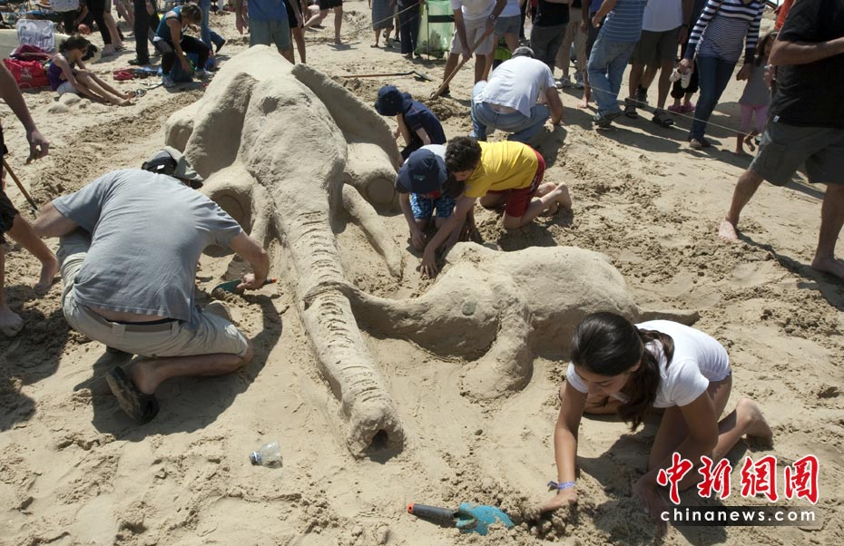 4月5日,以色列國家公園和自然保護區(qū)管理局在北城鎮(zhèn)Beit Yanai舉行了一年一度的沙雕大賽。世界眾多國家的沙雕愛好者前來參賽。圖片來源:中國新聞網(wǎng)