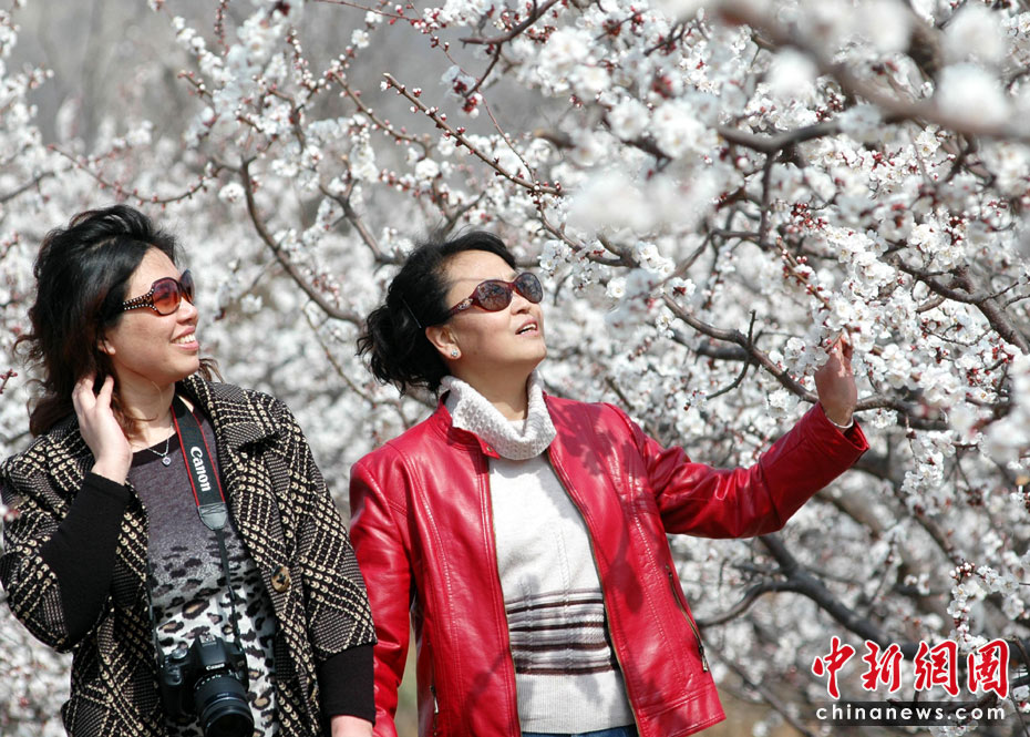 4月3日,山東鄒平縣萬畝杏園內(nèi)鮮花怒放,爭奇斗艷,正在進行的杏花節(jié)觀花活動吸引了當?shù)丶爸苓叧汕先f的攝影愛好者和游客紛紛前來拍照游玩,賞花踏青。中新社發(fā) 董乃德 攝