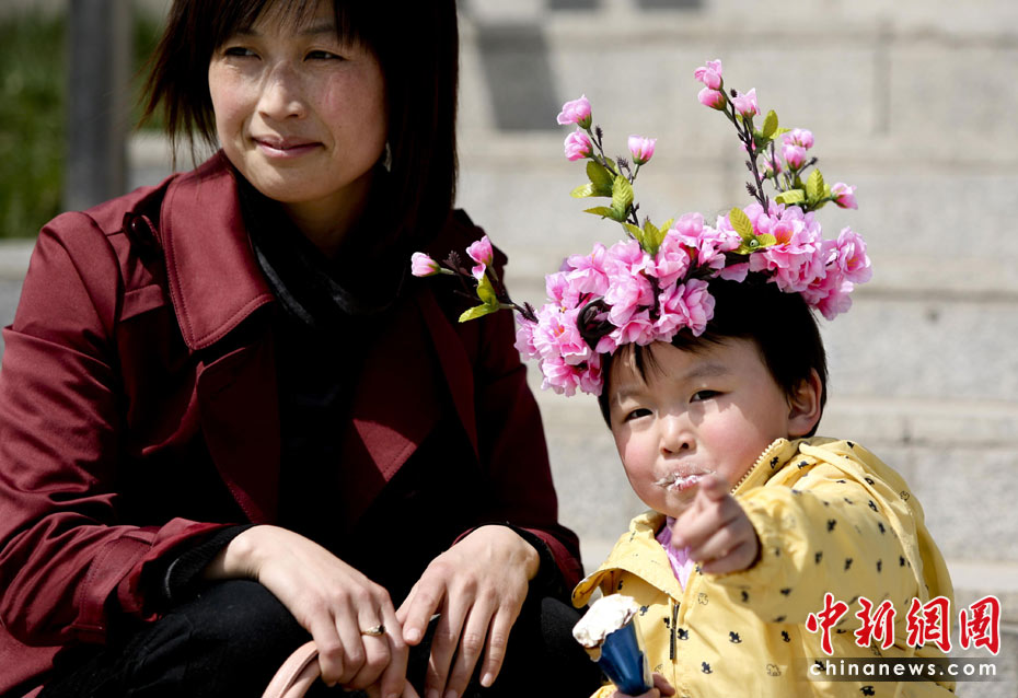 4月4日,北京植物園內(nèi)春桃怒放,眾多游客穿行與花間柳下感受北京遲來(lái)的春天。北京植物園2010年第22屆北京桃花節(jié)暨第7屆世界名花展于2010年4月1日至5月5日在植物園隆重舉辦。中新社發(fā) 陸欣 攝