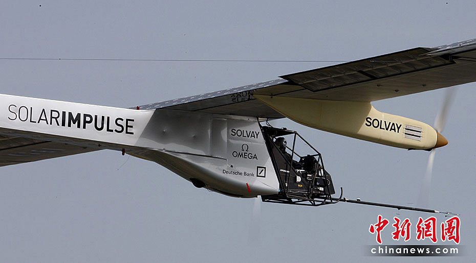 當(dāng)?shù)貢r間4月7日上午,全球首架依靠太陽能驅(qū)動的飛機(jī)進(jìn)行首次試飛,預(yù)計此種新型飛機(jī)將在2011年實現(xiàn)環(huán)球航行。圖片來源:中國新聞網(wǎng)