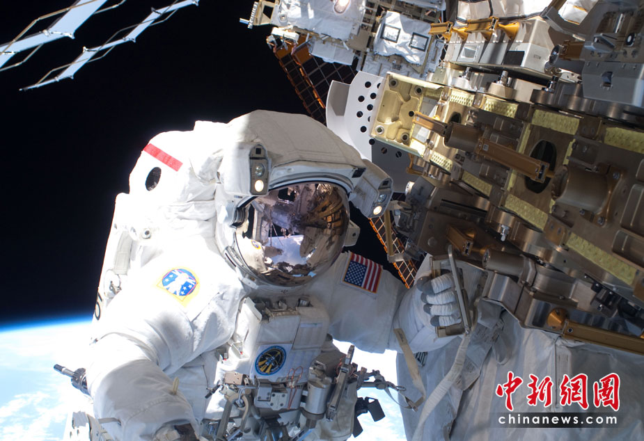 "發(fā)現(xiàn)號"宇航員太空中維護國際空間站