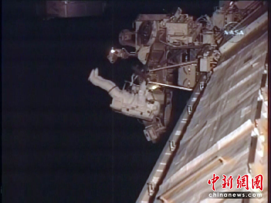 "發(fā)現(xiàn)號"宇航員太空中維護國際空間站