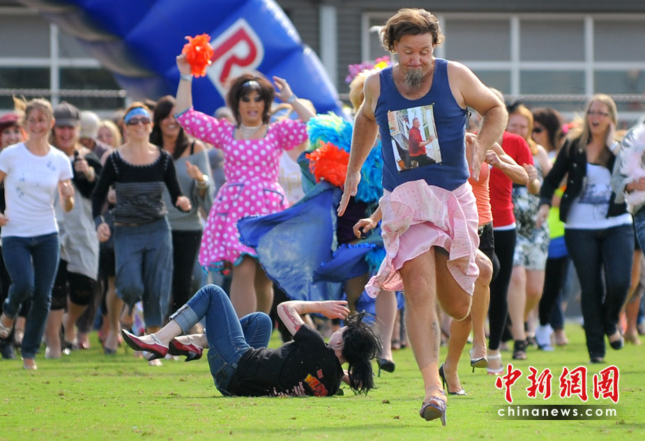 澳民眾挑戰(zhàn)多人穿高跟鞋賽跑世界紀(jì)錄