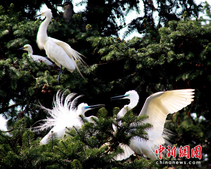 4月9日,一對白鷺在象山森林公園歡躍飛舞,譜寫一曲春日戀歌。四月,正值芳草萋萋,萬物生機勃勃。萬余只白鷺陸續(xù)抵達江西南昌象山森林公園棲息,繁衍后代,成為鄱陽湖濕地的一大獨特景觀, 吸引眾多攝影愛好者前來拍攝和觀賞。孫永勝 胡國林 攝