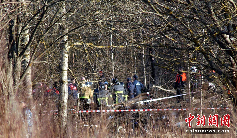 4月11日,波蘭總統(tǒng)卡欽斯基專機在俄羅斯斯摩棱斯克軍用機場墜毀地點附近的道路開通,但是警戒線核心區(qū)仍然關閉。俄波調查人員正在現(xiàn)場工作。圖片來源:中國新聞網