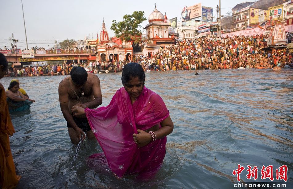 4月13日,印度教傳統(tǒng)節(jié)日“大壺節(jié)”步入尾聲,前來參加盛典的上萬苦行僧赤裸身體涌入恒河,祈求洗清身上的“罪惡”。圖片來源:中國新聞網(wǎng)