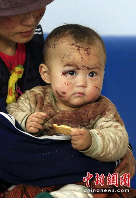 圖為4月15日,青海玉樹巴塘機(jī)場,受傷的孩子等待轉(zhuǎn)運(yùn)至西寧等地治療。青友 攝