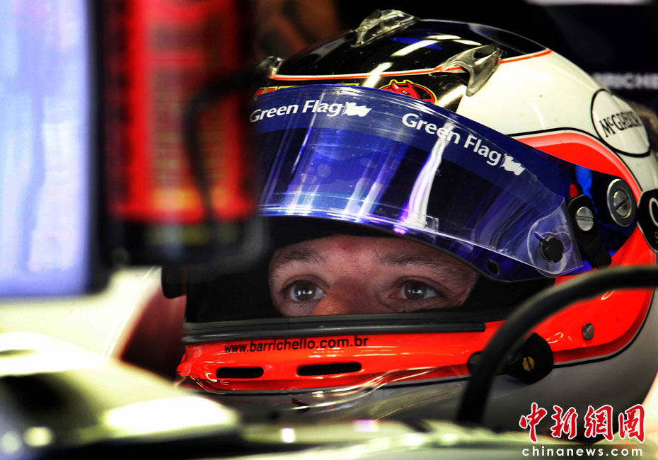 4月16日,2010國際汽聯(lián)F1世界錦標(biāo)賽上海站在上海國際賽車場(chǎng)開始車手第一、第二次練習(xí)賽。圖為代表威廉姆斯車隊(duì)出戰(zhàn)的巴西車手巴里切羅。中新社記者 任晨鳴 攝