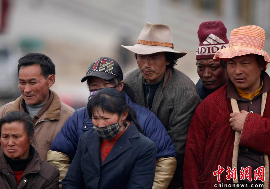 4月16日,青海玉樹結(jié)古鎮(zhèn)地震救援現(xiàn)場,當?shù)孛癖婈P(guān)注救援進展情況。中新社發(fā) 盛佳鵬 攝