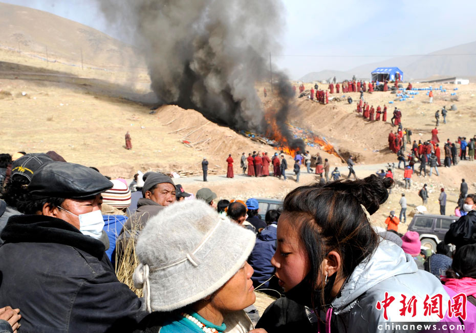 4月17日,青海省玉樹縣結(jié)古鎮(zhèn)附近的山坡上,眾多地震遇難者遺體被火葬。當(dāng)日,為妥善及時(shí)處理遇難人員遺體,預(yù)防災(zāi)區(qū)疫情的發(fā)生與流行,青海出臺(tái)地震遇難人員遺體處理意見,強(qiáng)調(diào)在處理遺體時(shí)要尊重少數(shù)民族喪葬習(xí)俗,尊重死者尊嚴(yán)。中新社發(fā) 廖攀 攝
