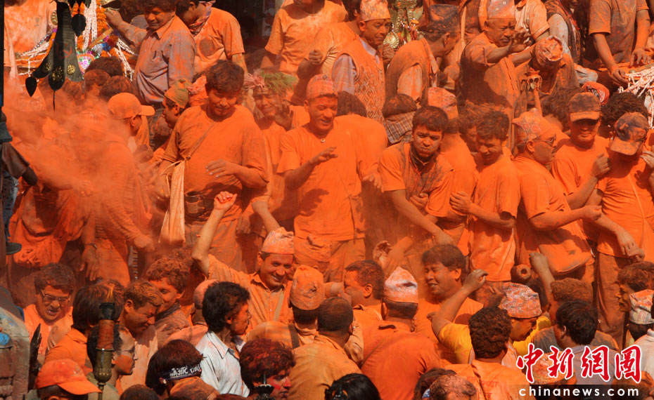 4月15日,尼泊爾迎來一年一度的傳統(tǒng)節(jié)日“尼歷新年”。當日全國放假一天,在加德滿都郊區(qū)人們涌上街頭潑灑紅粉慶祝新年。圖片來源:中國新聞網(wǎng)