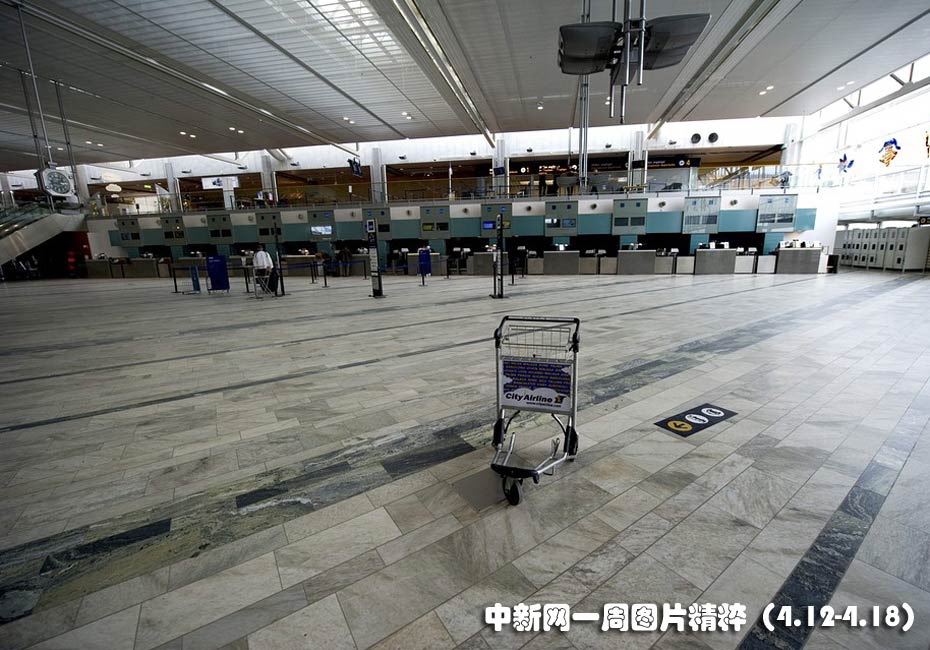 瑞典一機場大廳辦理登機手續(xù)的窗口前空無一人,此前冰島火山噴發(fā)產(chǎn)生的火山灰導致歐洲多個機場被迫關閉。