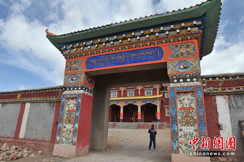 4月19日,新聞?dòng)浾呤状芜M(jìn)入青海玉樹7.1級(jí)強(qiáng)烈地震的震中點(diǎn)上拉秀鄉(xiāng)日麻村,出乎意料的是全村無一傷亡,村中心的查榮寺和幾家民房只是出現(xiàn)裂縫,堪為奇跡。中新社發(fā) 賈國(guó)榮 攝