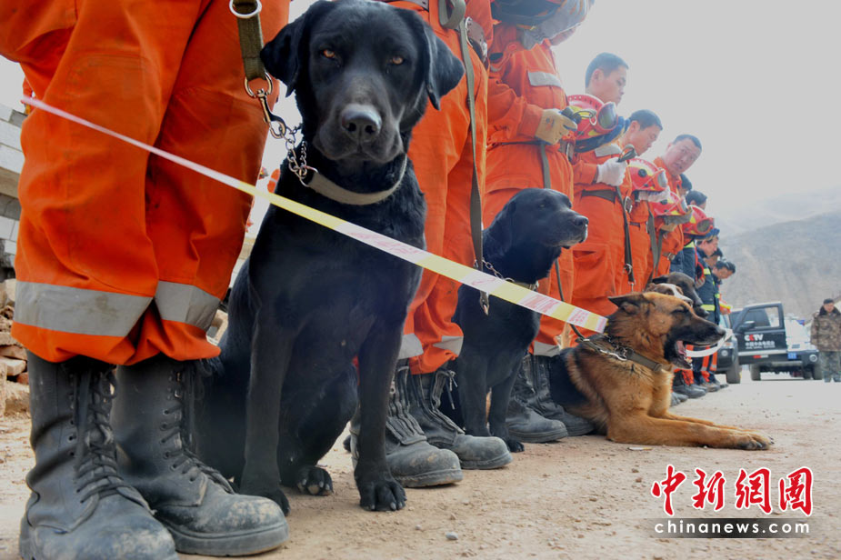 4月21日10時(shí),中國(guó)國(guó)家救援隊(duì)在青海玉樹地震災(zāi)區(qū)搜尋廢墟上默哀,深切哀悼地震遇難同胞。中新社發(fā) 賈國(guó)榮 攝