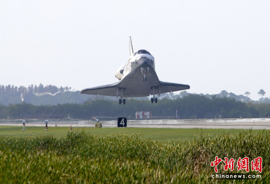 美國發(fā)現(xiàn)號航天飛機(jī)于當(dāng)?shù)貢r間4月20日成功降落在佛羅里達(dá)州肯尼迪航天中心,結(jié)束了為期15天的國際空間站建設(shè)之旅。圖片來源:中國新聞網(wǎng)