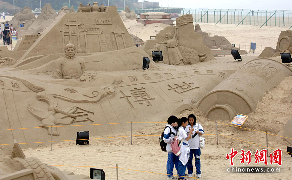 第三屆廈門觀音山沙雕文化公園于4月22日在廈門觀音山黃金沙灘投入試運營。本屆沙雕文化公園將以“暢游歷史”及“世博文化”為主題,共匯集70余座沙雕作品,規(guī)模繼續(xù)在亞洲稱雄。本次2010年觀音山沙雕文化公園將分為六大區(qū)域,分別是歷史主題區(qū)、世博專區(qū)、海洋文化區(qū)、競賽區(qū)、DIY體驗區(qū)和休閑配套區(qū)。尤以世博專區(qū)和歷史主題區(qū)為展示重點。王東明 攝