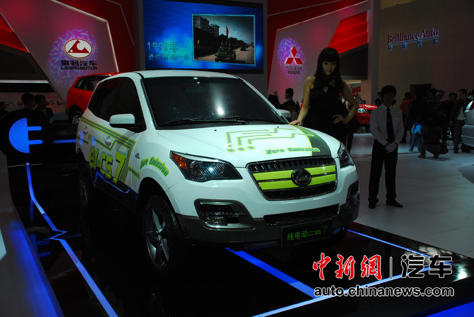 第十一屆北京國際車展23日開幕,在本屆以“暢想綠色未來”為主題的車展上,新能源車成為最大亮點。圖為長豐獵豹CS7電動車 王槊 攝