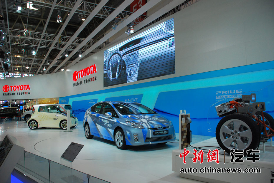 第十一屆北京國(guó)際車展23日開(kāi)幕,在本屆以“暢想綠色未來(lái)”為主題的車展上,新能源車成為最大亮點(diǎn)。圖為豐田普銳斯混合動(dòng)力車 王槊 攝