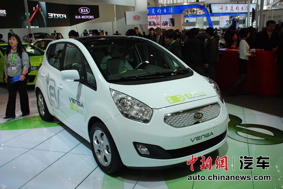 第十一屆北京國際車展23日開幕,在本屆以“暢想綠色未來”為主題的車展上,新能源車成為最大亮點(diǎn)。圖為起亞Venga電動(dòng)車 王槊 攝