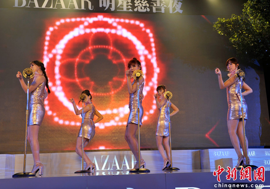 4月25日,由《時尚芭莎》雜志社主辦的第8屆“BAZAAR明星慈善夜”活動在上海舉行,圖為韓國少女組合Wonder Girl參加晚宴并現場演唱漢語版《nobody》。 中新網記者 金碩 攝