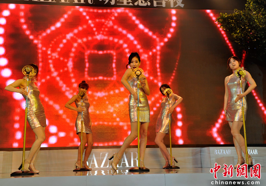 4月25日,由《時(shí)尚芭莎》雜志社主辦的第8屆“BAZAAR明星慈善夜”活動(dòng)在上海舉行,圖為韓國(guó)少女組合Wonder Girl參加晚宴并現(xiàn)場(chǎng)演唱漢語(yǔ)版《nobody》。 中新網(wǎng)記者 金碩 攝