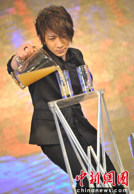 4月25日,由《時尚芭莎》雜志社主辦的第8屆“BAZAAR明星慈善夜”活動在上海舉行,圖為劉謙為現(xiàn)場嘉賓表演精彩炫目的魔術(shù)。 中新網(wǎng)記者 金碩 攝