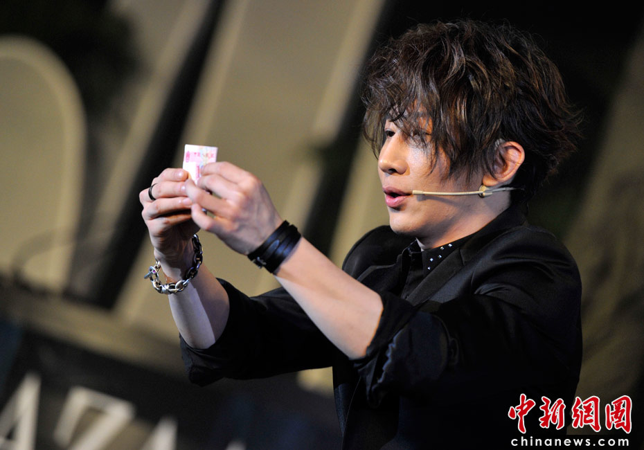 4月25日,由《時尚芭莎》雜志社主辦的第8屆“BAZAAR明星慈善夜”活動在上海舉行,圖為劉謙為現(xiàn)場嘉賓表演精彩炫目的魔術(shù)。 中新網(wǎng)記者 金碩 攝