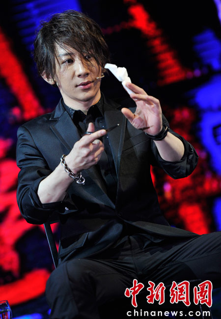4月25日,由《時尚芭莎》雜志社主辦的第8屆“BAZAAR明星慈善夜”活動在上海舉行,圖為劉謙為現(xiàn)場嘉賓表演精彩炫目的魔術。 中新網(wǎng)記者 金碩 攝