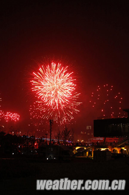 2010年4月27日,上海世博會(huì)開(kāi)幕式彩排順利進(jìn)行。圖為美麗的煙花。卞赟 攝