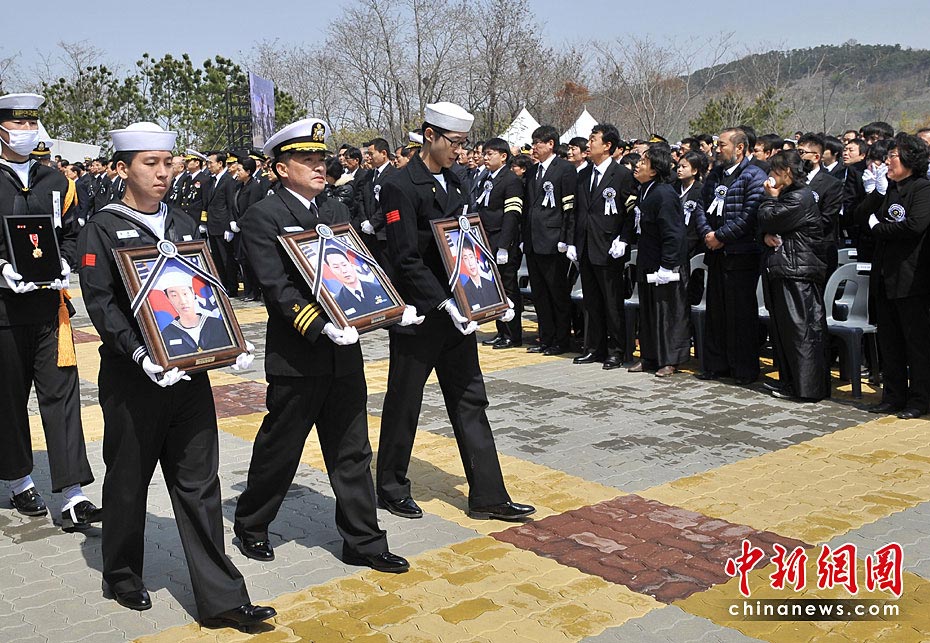 4月29日上午,韓國“天安”艦遇難官兵遺體告別儀式在平澤海軍第二艦隊(duì)司令部安保公園舉行。韓國總統(tǒng)李明博攜夫人參加告別儀式。圖片來源:中國新聞網(wǎng)
