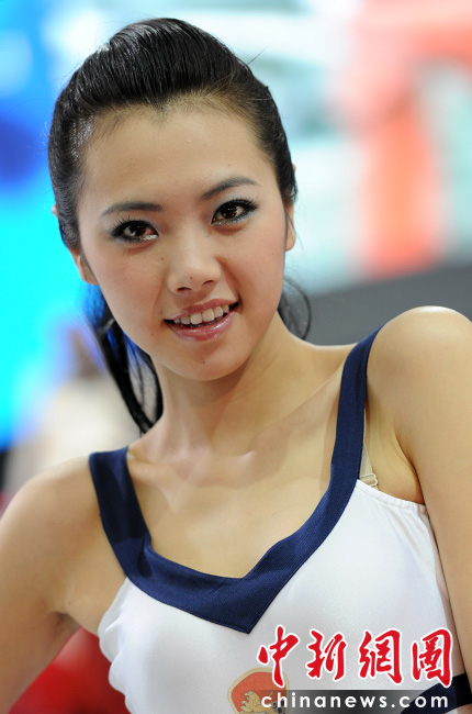 “第十一屆北京國際車展”是名車新品搶先亮相的舞臺,也成了車模們爭奇斗艷的場所,參觀者在車展中可以享受兩道視覺大餐。中新網(wǎng)記者 金碩 攝