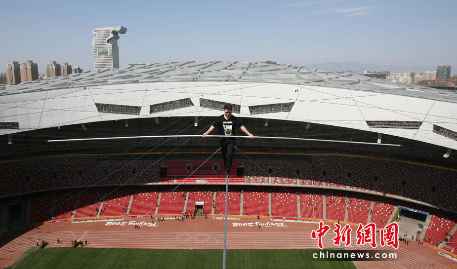 新疆高空王子鳥巢挑戰(zhàn)高空走鋼絲