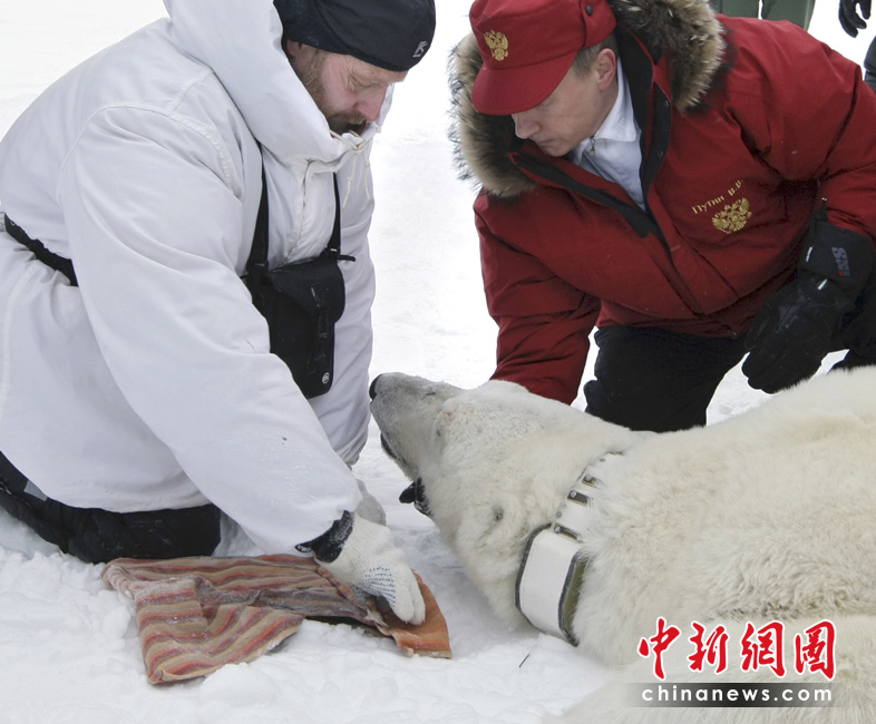4月29日,俄羅斯總理普京參觀(guān)亞歷山大地島(法蘭士約瑟夫地群島)。 普京還與在研究學(xué)者一同給通過(guò)專(zhuān)門(mén)的陷阱捕獲的北極熊戴上衛(wèi)星定位項(xiàng)圈。此外,學(xué)者們還與普京一起給北極熊進(jìn)行測(cè)量和秤體重,