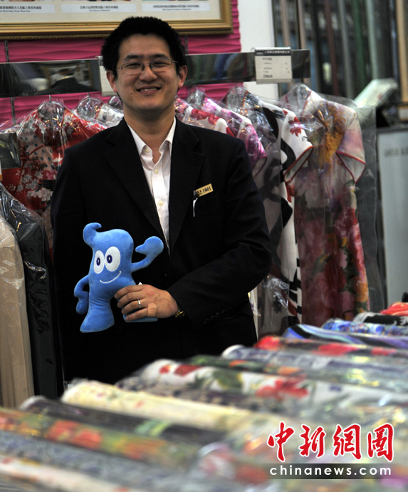 “希望世博會圓滿成功,能給上海增加一張名片!毙∴嵏嬖V記者,世博會帶來的客流使店里的生意明顯增加不少,顧客差不多有一半是外國人,他們非常喜歡真絲的面料。