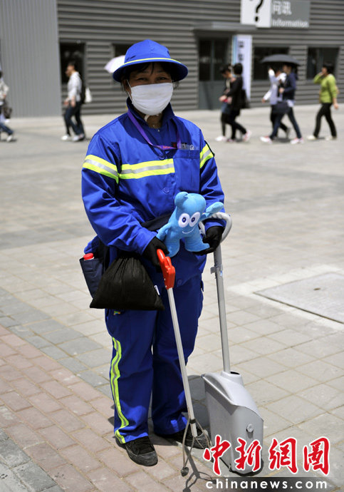 聽說是從北京來的記者,王大姐非常配合地滿足了我們的要求,與海寶照了合影,不過一再說自己不上相,照起來不好看。王大姐告訴記者,在世博園區(qū)里工作是早晚班輪換上的,早班從早上4點到下午2點,晚班從下午2點到夜里12點,工作還是比較辛苦的!捌诖啦⿻軌驁A滿成功!北磉_(dá)完對世博會的祝福后,王大姐匆匆離開,回到了工作崗位。