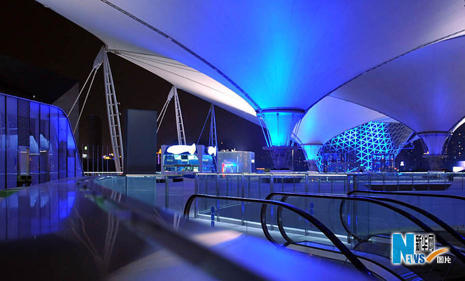 靜待開(kāi)幕的世博園沉浸在一片暮色中,流光溢彩,給人無(wú)限遐想。從外灘到世博園,“夜”上海不斷延伸,讓人激情跳躍。圖片來(lái)源:新華網(wǎng)孫巍攝