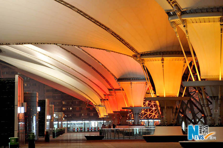靜待開幕的世博園沉浸在一片暮色中,流光溢彩,給人無限遐想。從外灘到世博園,“夜”上海不斷延伸,讓人激情跳躍。圖片來源:新華網(wǎng)孫巍攝