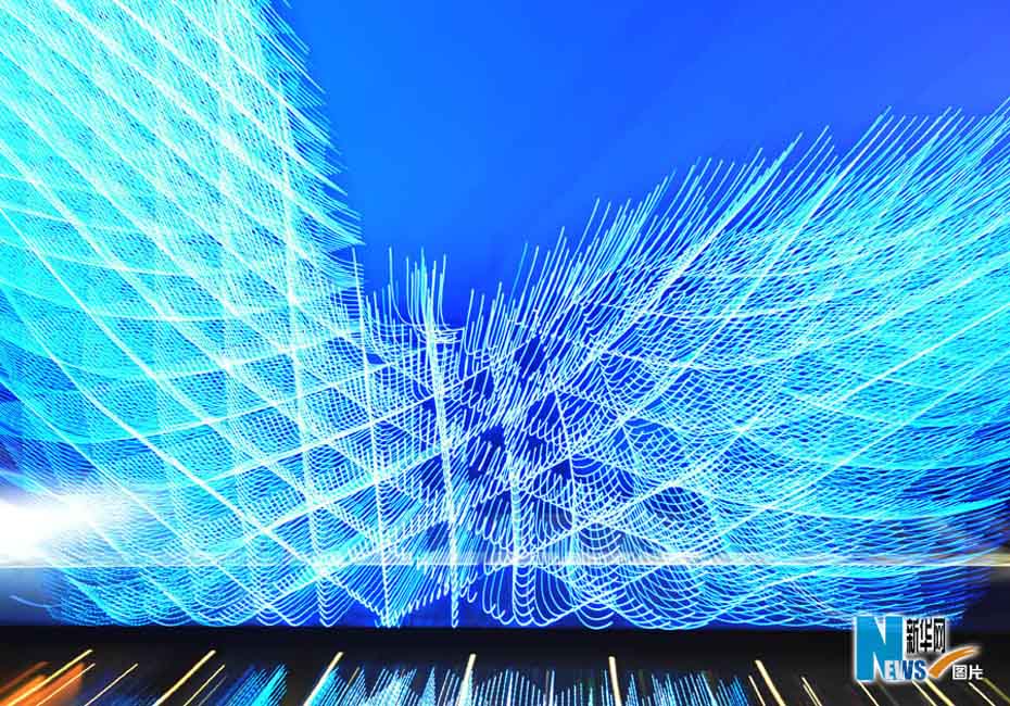 夜色下的世博園,迷離而夢(mèng)幻。圖為世博軸陽(yáng)光谷。圖片來(lái)源:新華網(wǎng) 郭毅攝