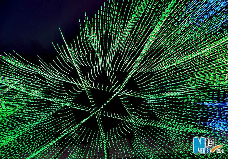 夜色下的世博園,迷離而夢(mèng)幻。圖為世博軸陽光谷。圖片來源:新華網(wǎng) 郭毅攝
