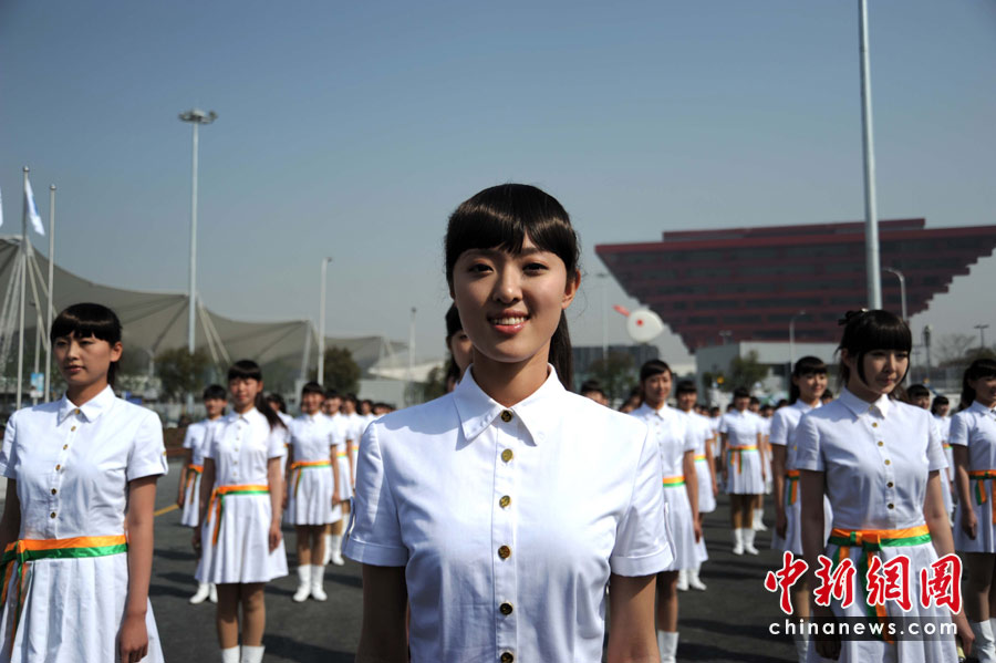 4月30日晚,舉世矚目的上海世博會開幕式將在黃浦江畔世博園區(qū)舉行。圖為上海世博會禮儀小姐正在做最后準備。中新社發(fā) 許康平 攝