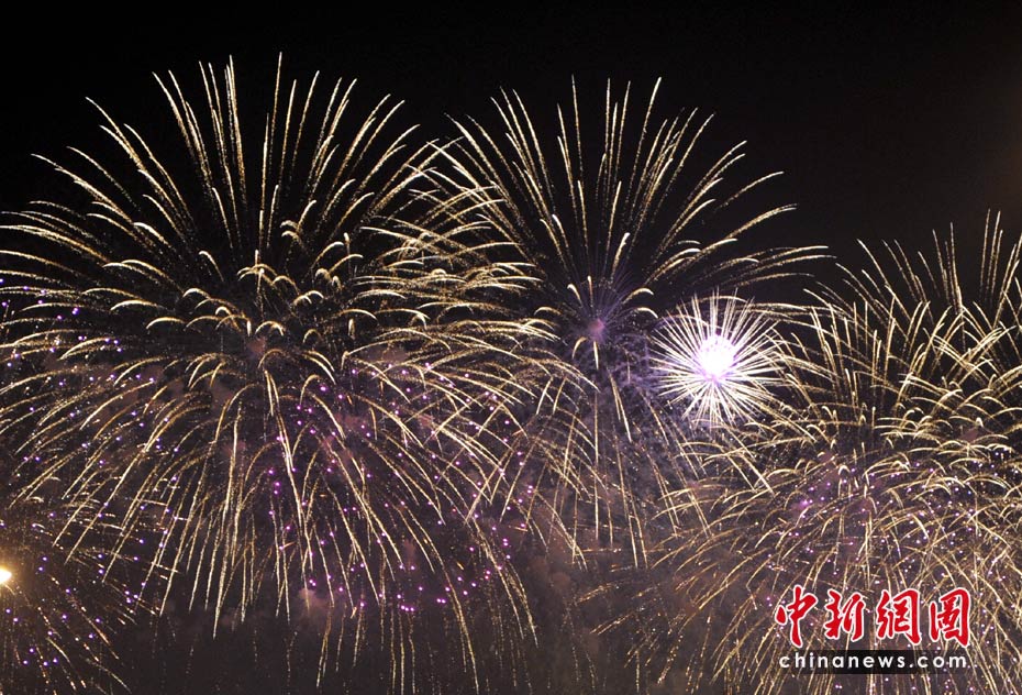 4月30日晚,2010年上海世博會(huì)開幕式在上海世博園世博文化中心舉行。21時(shí)28分,世博會(huì)焰火燈光表演開始。黃浦江兩岸綿延3.28公里同時(shí)奏響火樹銀花不夜天的華彩世博樂章。中新網(wǎng)記者 王紅綱 攝