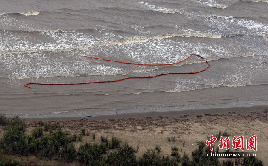 4月30日,在美國路易斯安那州海岸,為阻隔原油擴(kuò)散而設(shè)的護(hù)欄帶被海風(fēng)浪沖到岸邊。當(dāng)天,美國總統(tǒng)奧巴馬下令調(diào)查墨西哥灣石油鉆井平臺爆炸事件,以避免將來類似事件再次發(fā)生。平臺爆炸沉沒后泄漏的原油當(dāng)天已漂至美國沿岸。圖片來源:中國新聞網(wǎng)