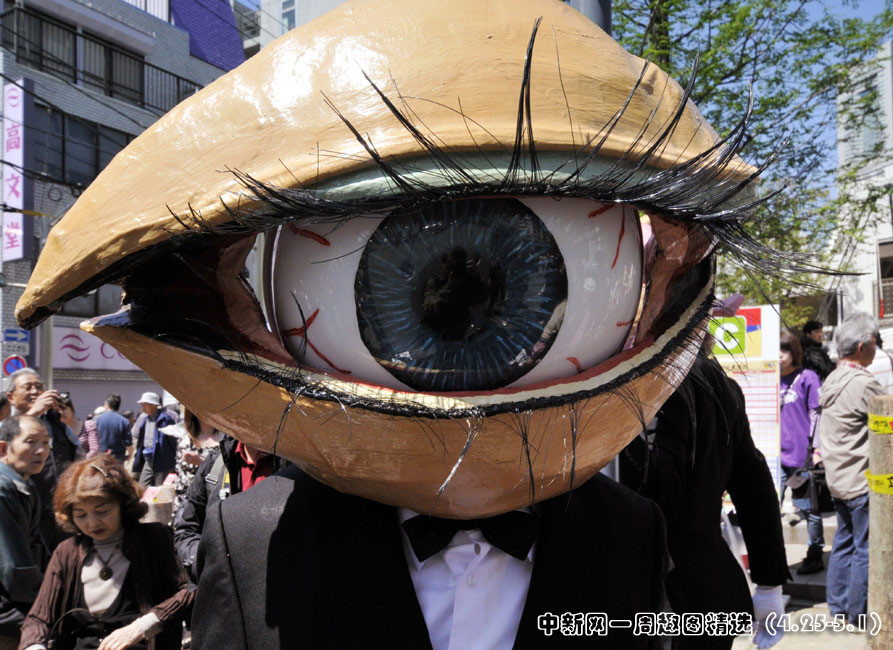 4月26日,日本一個(gè)表演藝術(shù)團(tuán)體扮成“獨(dú)眼怪人”在街頭亮相,大玩行為藝術(shù)。圖片來(lái)源:中國(guó)新聞網(wǎng)>>點(diǎn)擊觀看詳細(xì)內(nèi)容