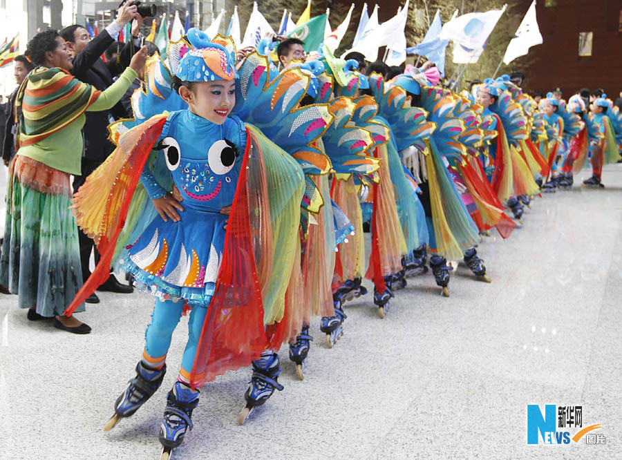 5月1日,中國2010年上海世博會開園儀式在上海世博園世博中心舉行。這是小朋友們在開園儀式上表演。裴鑫攝(新華網)