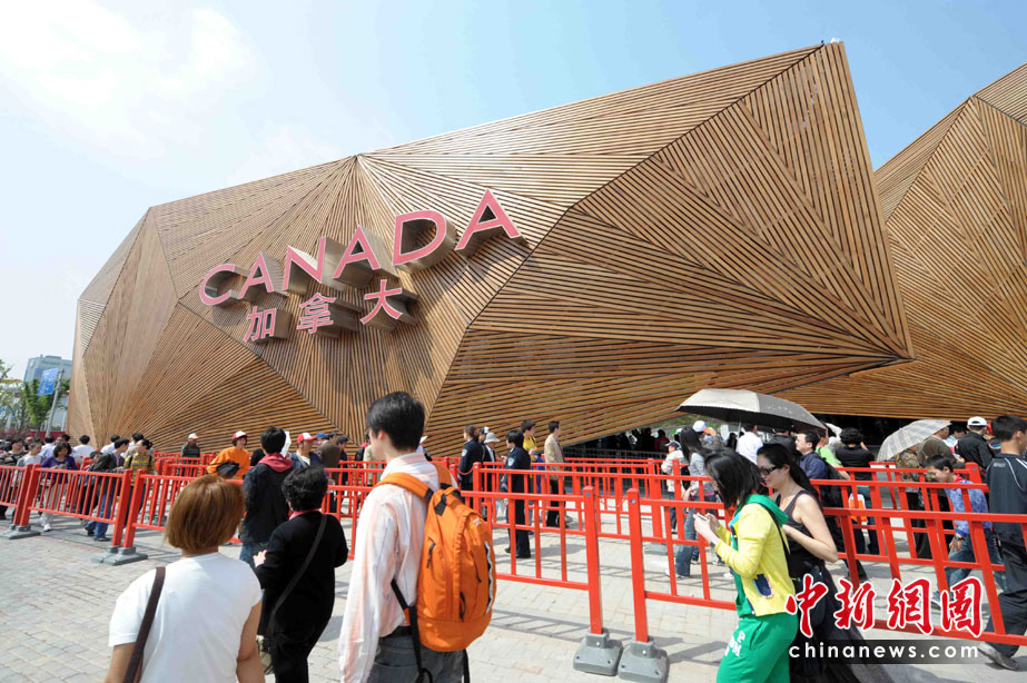 5月1日,上海世博會正式開園迎客,首批游客入園參觀。圖為數(shù)以萬計的海內(nèi)外觀眾陸續(xù)步入加拿大館參觀。中新社發(fā) 陳文 攝