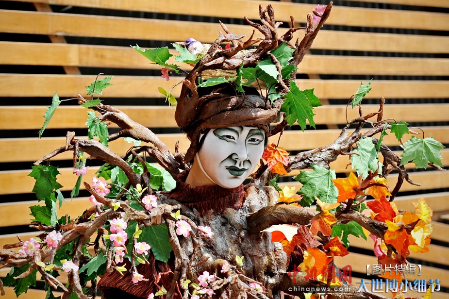 5月1日,上海世博會(huì)正式開園,當(dāng)日有20萬(wàn)人次的游客參觀了世博園。世博首日,許許多多的小細(xì)節(jié)都帶給人一種全新的體驗(yàn)。圖為在加拿大館一位扮作大樹的表演者。
