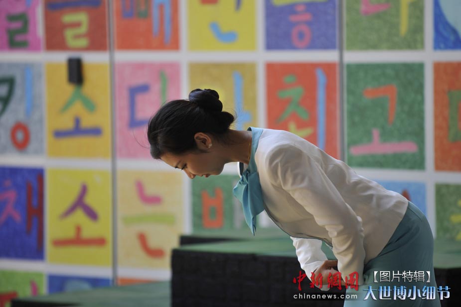 5月1日,上海世博會正式開園,當日有20萬人次的游客參觀了世博園。世博首日,許許多多的小細節(jié)都帶給人一種全新的體驗。圖為韓國館禮儀小姐以甜美的笑容面對第一批進館的游客。中新網(wǎng)記者 王紅綱 攝