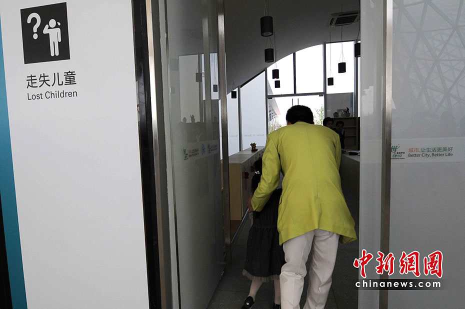 5月2日清晨,7歲的林姝彤小朋友剛跟著伯伯嬸嬸進(jìn)入上海世博園,就在亂哄哄的人流中走丟了,志愿者把她領(lǐng)到走失兒童認(rèn)領(lǐng)處。服務(wù)小姐在詢問她的姓名等關(guān)鍵詞之后,會(huì)立即廣播尋人啟示。結(jié)果,她很快就和親人團(tuán)圓了。中新社記者 賈國榮 攝